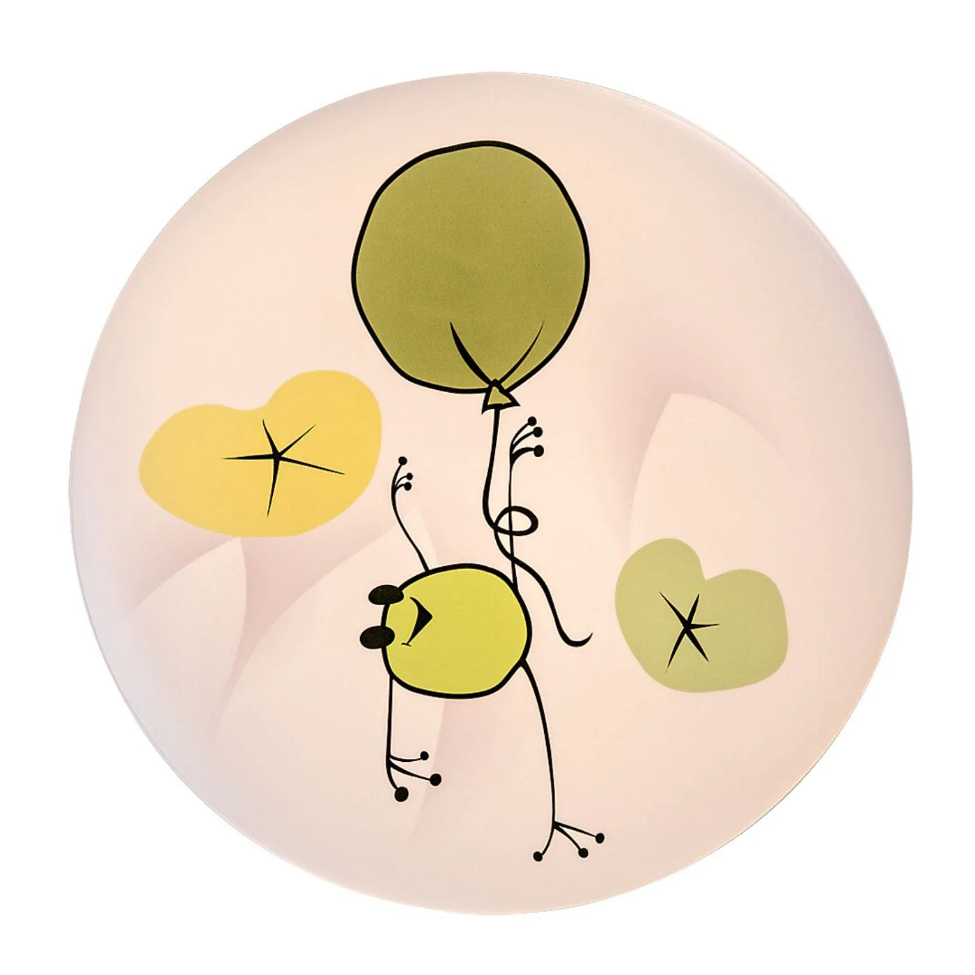 Forma rotundă și abajurul decorat cu un model adorabil, ce înfățișează o broscuță veselă și baloane colorate, adaugă o notă de farmec și imaginație camerei copilului. Corpul metalic rezistent și abajurul din plastic decorativ asigură durabilitate și siguranță, fiind potrivite pentru utilizarea zilnică.