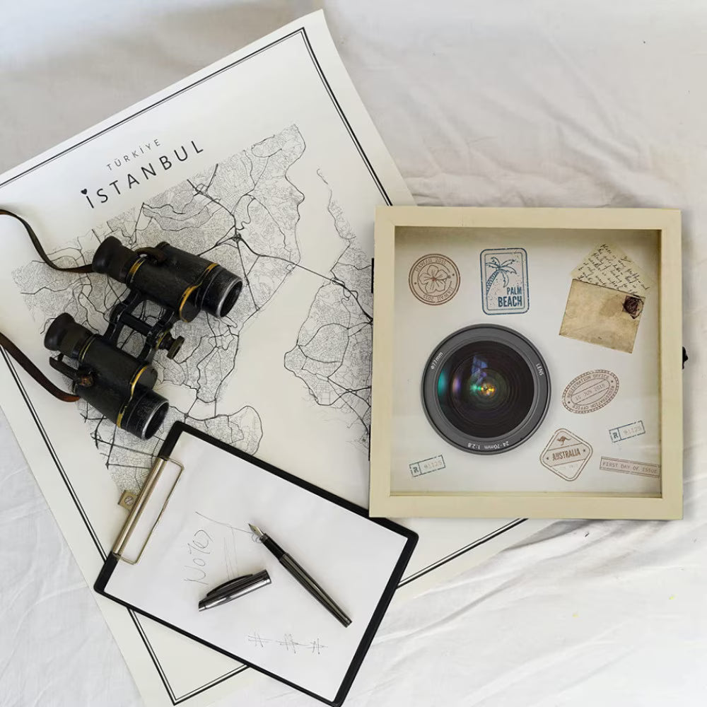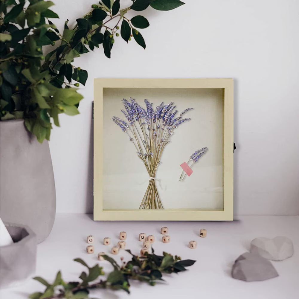Rama foto cu casetă pentru suveniruri Muzilife îmbină farmecul decorului vintage cu funcționalitatea modernă. Realizată din lemn și sticlă, această ramă creează un spațiu special pentru cele mai importante momente din viață. Poți expune fotografii, bilete la un concert memorabil, dopuri de vin din serile deosebite, un buchet de mireasă uscat sau orice alt amintir care merită păstrat la loc de cinste.