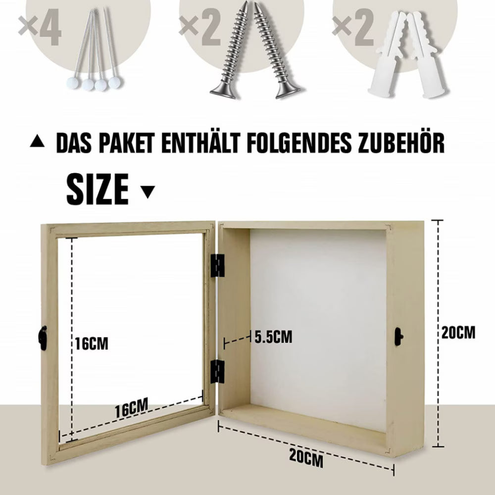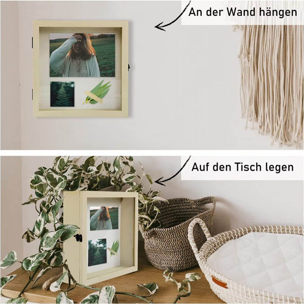 Rama foto cu caseta pentru suveniruri Muzilife, lemn/sticla, bej, 25 x 25 cm