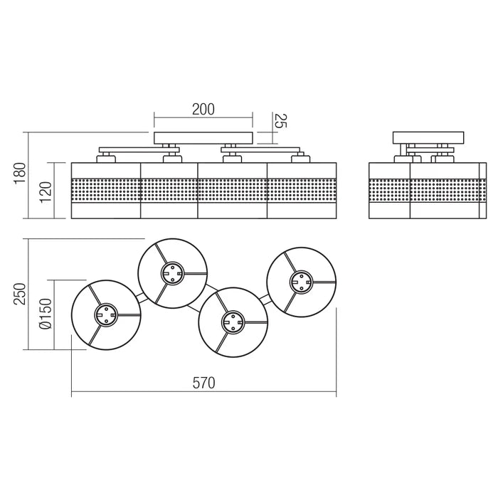 Corpul de iluminat este prevăzut cu 4 dulii E27 și suportă o putere maximă de 4 x 42 W. Becurile nu sunt incluse, oferindu-ți libertatea de a alege tipul de sursă, intensitatea și temperatura de culoare dorite, din clasele energetice A–G, în funcție de atmosfera pe care vrei să o creezi.