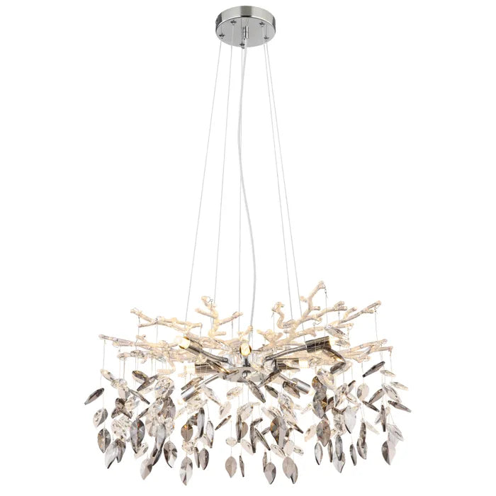 Modelul este prevăzut cu 8 dulii G9 și suportă o putere maximă de 8 x 8 W. Sursele de lumină nu sunt incluse, ceea ce îți permite să personalizezi intensitatea și temperatura de culoare, alegând becuri din clasele energetice A–G, în funcție de atmosfera dorită.