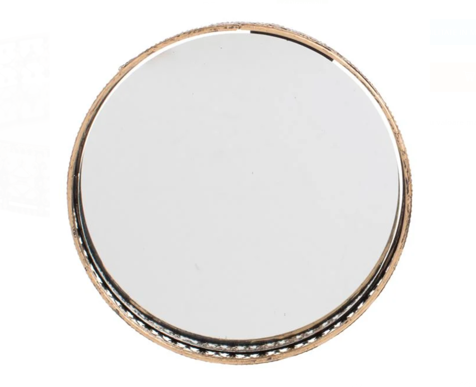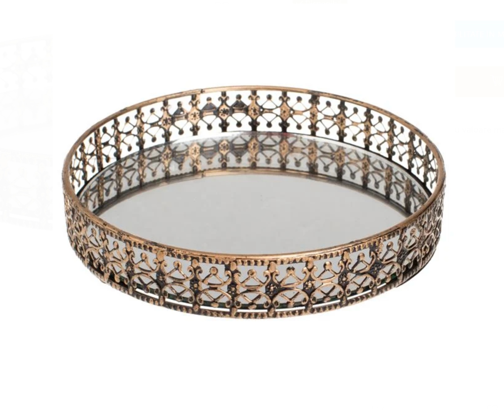 Tava decorativă cu bază oglindă și margine metalică sculptată este un accesoriu elegant care pune în valoare orice aranjament decorativ. Reflexia discretă a oglinzii amplifică lumina și evidențiază obiectele așezate în interior, creând un efect vizual rafinat și plin de stil.